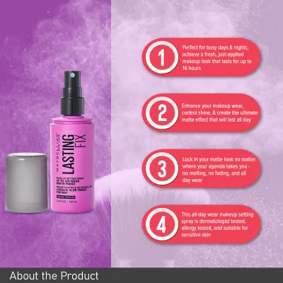 ویژگی های برجسته اسپری فیکساتور Lasting Fix میبلین