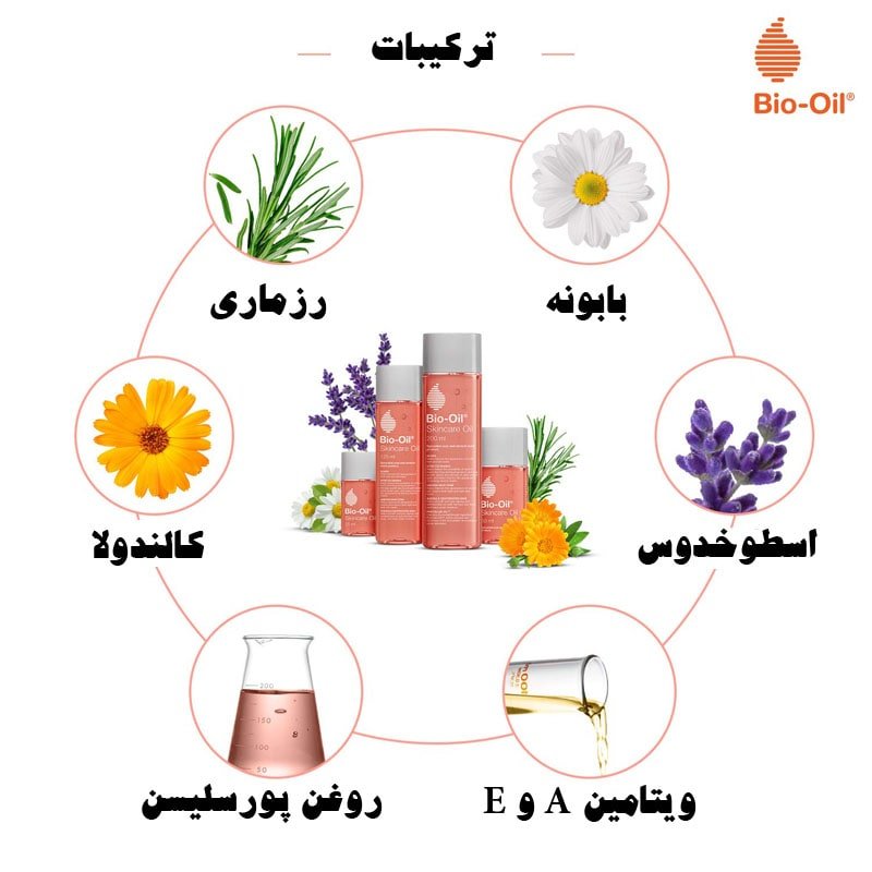 روغن بایو اویل با بهره گیری از ویتامین های A و E و عصاره های گیاهی همچون عصاره بابونه و رزماری به راحتی به عمق پوست نفوذ کرده و موجب نرمی و لطافت پوست می شود .
