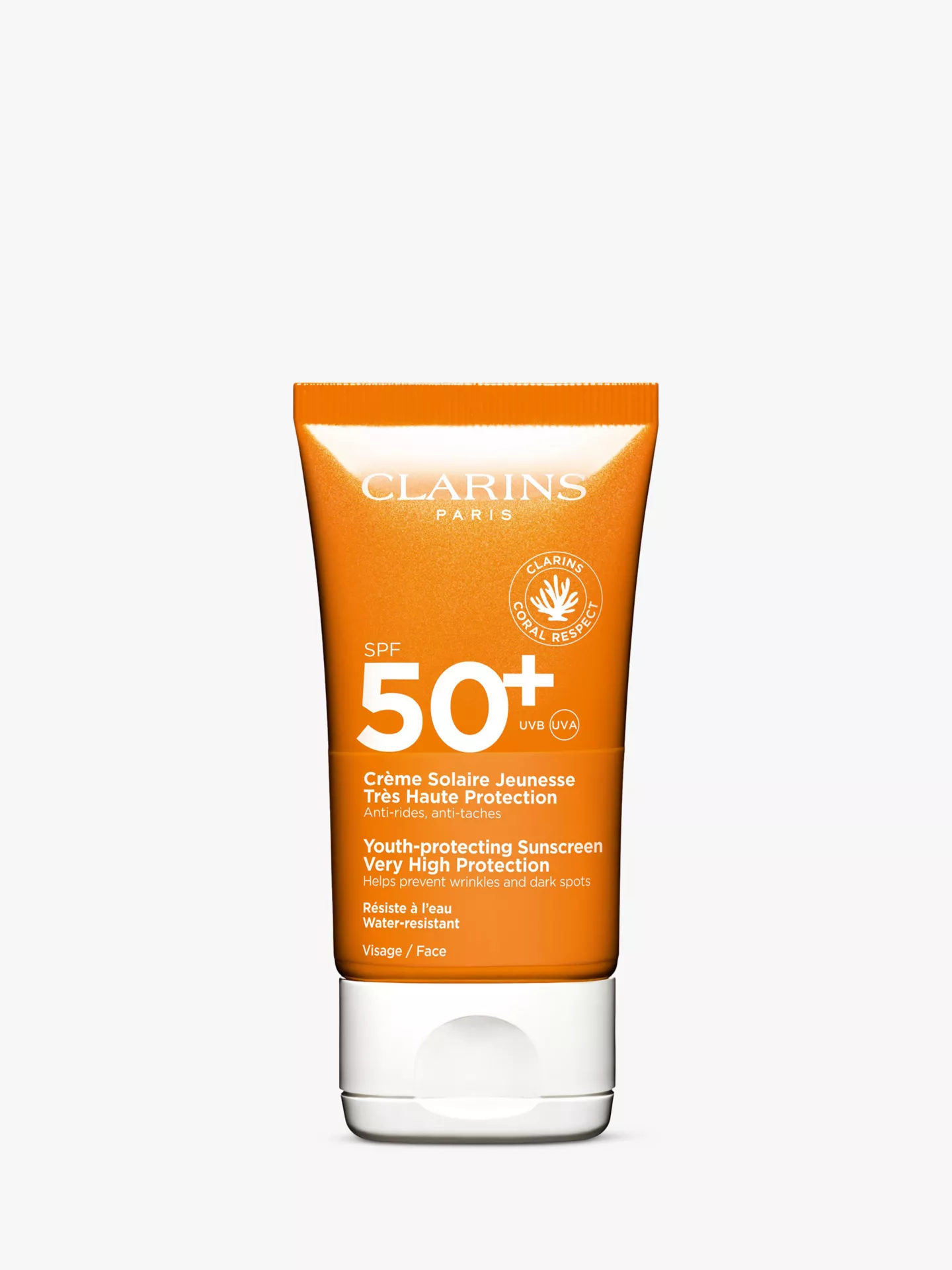 ضد آفتاب جوانساز کلارنس Clarins Youth-Protecting Sunscreen Very High Protection SPF 50+ یک محصول برجسته در دسته ضد آفتابها است که برای محافظت از پوست در برابر اشعه های مضر خورشید طراحی شده است. این کرم ضد آفتاب با SPF 50+، محافظت بسیار بالایی را ارائه می دهد و به ویژه برای افرادی که زمان زیادی را در فضای باز میگذرانند، مناسب است. این محصول با ترکیبات طبیعی و فرمولاسیون پیشرفته، نه تنها از پوست در برابر آفتاب سوختگی محافظت میکند، بلکه به حفظ جوانی و شادابی پوست نیز کمک می کند.