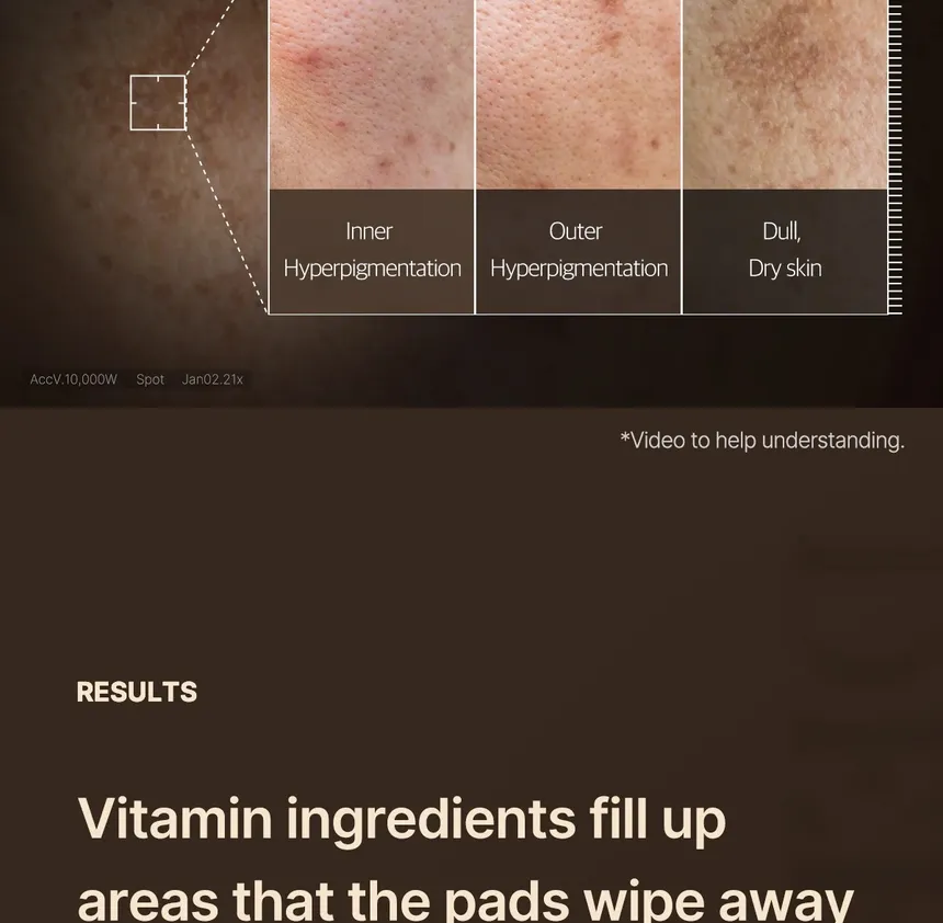 ویتامین C موجود در این پدها به روشن شدن پوست و کاهش لک‌های تیره کمک می‌کند.