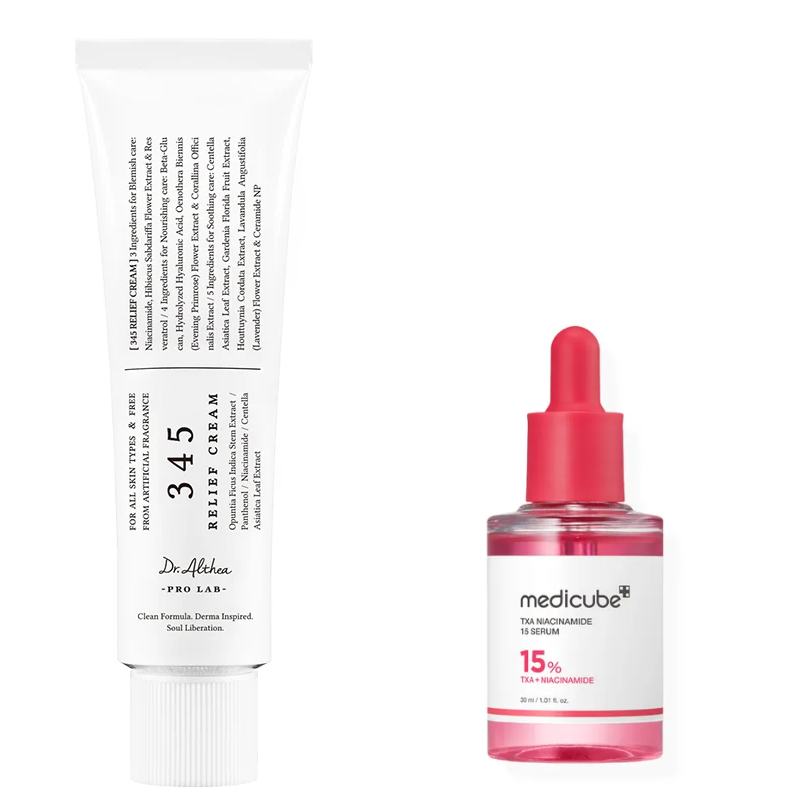 پک ترمیم کننده و روشن کننده مدی کیوب و دکتر التیا Medicube TXA Niacinamide 15% و Dr.Althea 345 Relief Cream یک استراتژی مراقبتی جامع برای دستیابی به پوستی روشنتر، یکدستتر و آرامتر است. این ترکیب به طور همافزا عمل میکند تا نه تنها هایپرپیگمنتیشن و لکها را به طور مؤثر کاهش دهد، بلکه پوست را آبرسانی، تسکین و سد دفاعی آن را تقویت کند. اگر به دنبال راهحلی قوی برای لکهای پوستی هستید که به سلامت و ترمیم پوست شما نیز توجه دارد، این پکیج یک انتخاب هوشمندانه و مؤثر خواهد بود.
