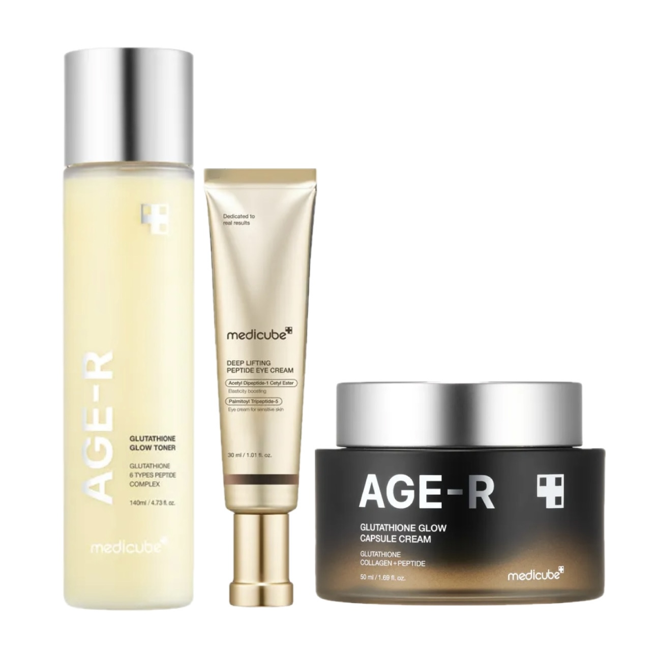 پک گلوتاتیون و جوانساز مدی کیوب [Medicube Glutathione Glow Toner و Medicube Glutathione Glow Capsule Cream و Medicube Deep Lifting Peptide Eye Cream] یک انتخاب عالی برای افرادی است که به دنبال رویکردی جامع برای مقابله با لک‌ها، علائم پیری و کدری پوست هستند. این سه محصول با بهره‌گیری از قدرت گلوتاتیون، پپتیدها و سایر ترکیبات فعال، به طور هم‌افزایی به روشن‌شدن پوست، کاهش چین‌وچروک و بهبود کلی سلامت و ظاهر آن کمک می‌کنند. این پک، سرمایه‌گذاری‌ای ارزشمند برای دستیابی به پوستی درخشان، سفت و جوان‌تر است.