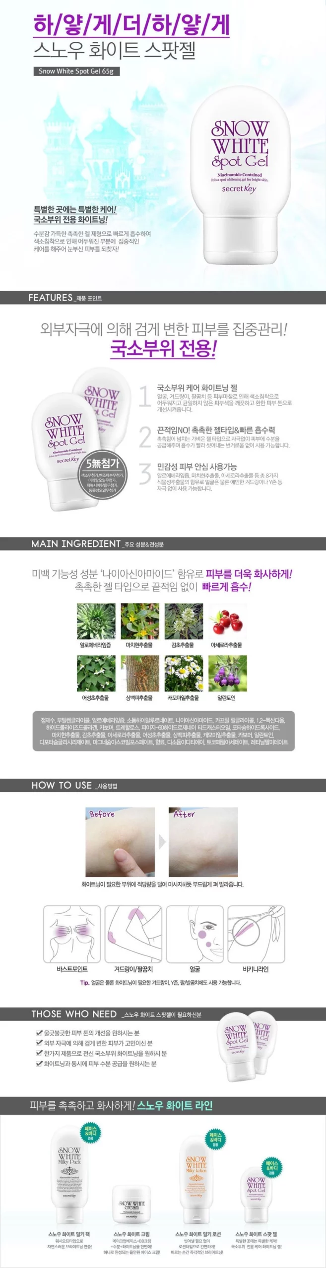 ژل ضد لک سکرت کی Snow White Spot Gel 65g یک محصول مراقبت از پوست است که به دلیل ترکیبات منحصر به فرد و فواید متعددش شناخته شده است. این ژل به طور خاص برای افرادی که به دنبال روشن کردن و بهبود رنگ پوست در نواحی خاص هستند، طراحی شده است.