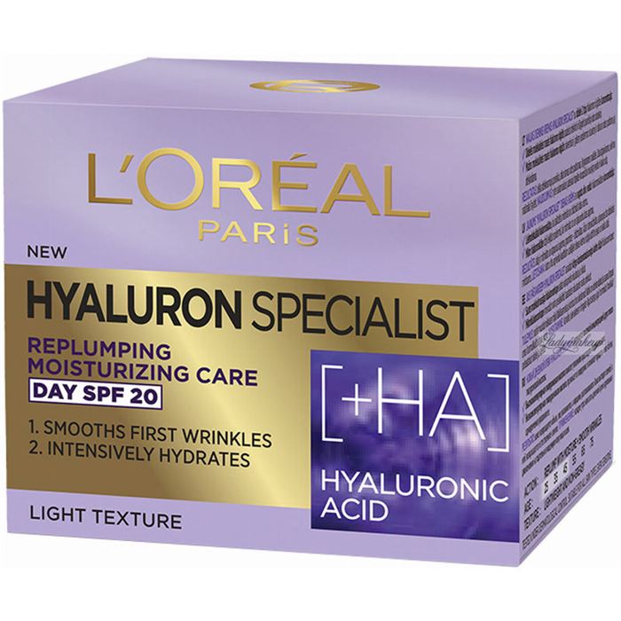کرم آبرسان و ضدچروک روز لورال هیالورون اسپشیالیست LOreal Hyaluron دارای فرمول ویژه جهت آبرسانی قوی و مقابله و صاف کنندگی چروک های زودرس صورت می باشد. کرم دور چشم لورال حاوی دو نوع هیالورونیک اسید با توانایی جذب رطوبت 1000 برابر وزن ملکلولی آن جهت آبرسانی قوی و صاف کنندگی پوست است، نوع اول هیالورونیک اسید با وزن ملکولی بالا جهت آبرسانی قوی، قرارگیری در خطوط و ایجاد سطح هموار پوست بوده و نوع دوم آن هیالورونیک اسید با وزن ملکولی پایین جهت نفوذ در لایه های عمقی پوست، رطوبت رسانی عمقی و افزایش تولید کلاژن و احیاکنندگی پوست می باشد. نتیجه آن پوستی کاملا آبرسانی شده و مقابله با چروک و علائم افزایش سن و صاف کنندگی چروک های زودرس می باشد.