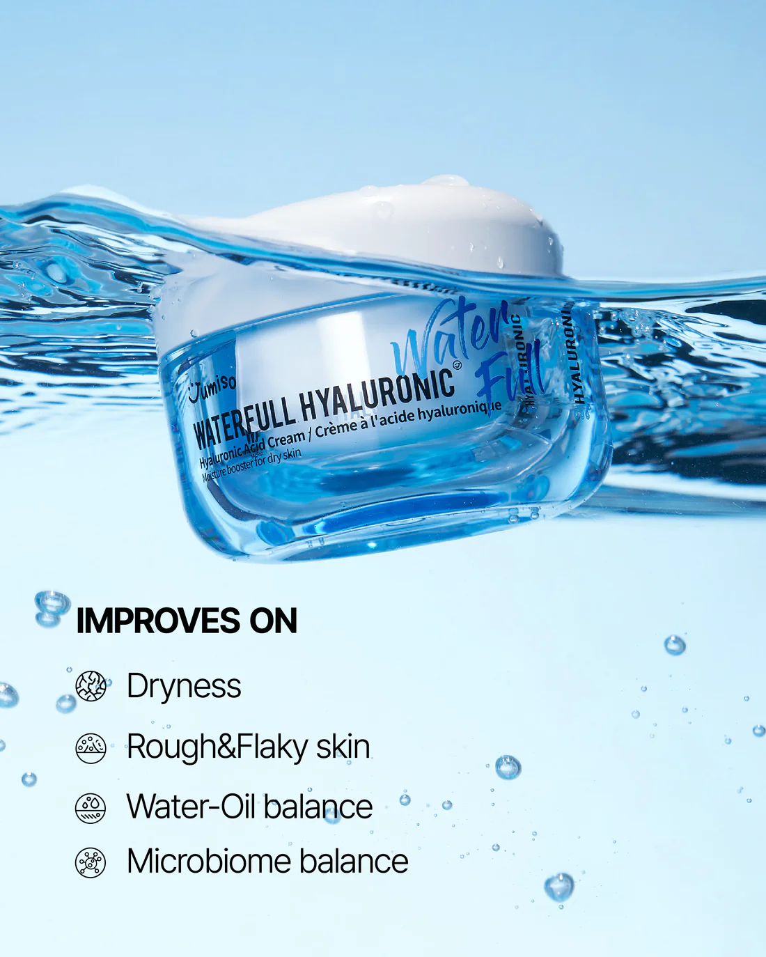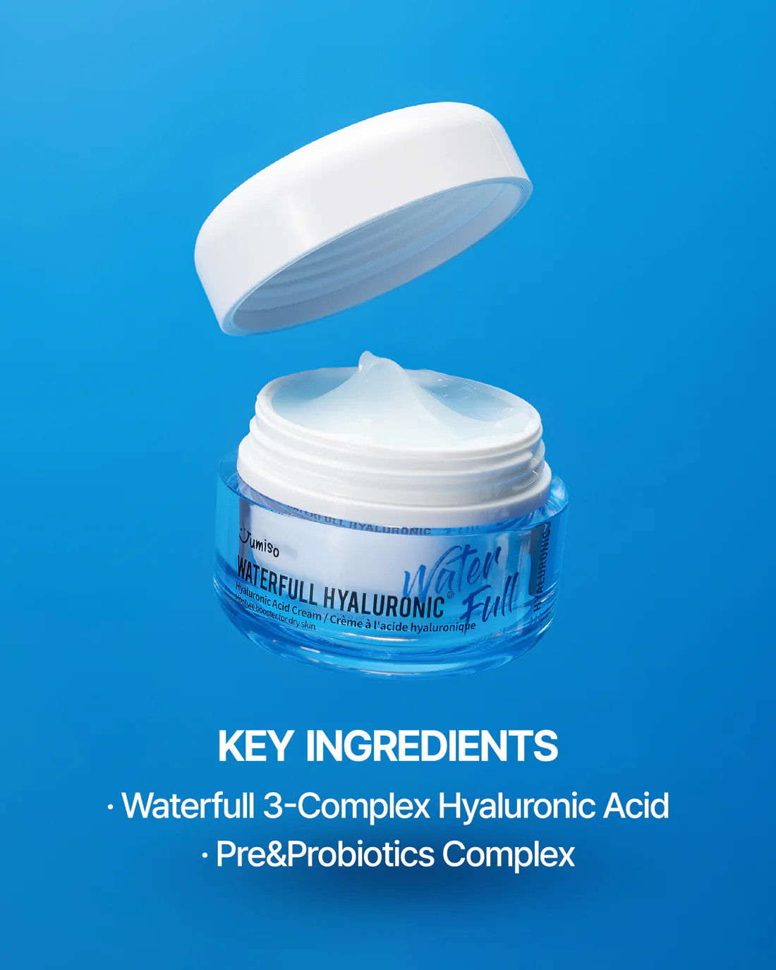 کرم آبرسان50 میل هیالورونیک جومیسو واتر فول Jumiso Waterfull Hyaluronic Cream فراتر از یک آبرسان ساده عمل میکند. وجود کمپلکس 5 گانه پری-پروبیوتیک، یک سپر دفاعی بیولوژیکی برای پوست ایجاد میکند. این ترکیبات تخمیری مفید (شامل Bifida Ferment Lysate) به: