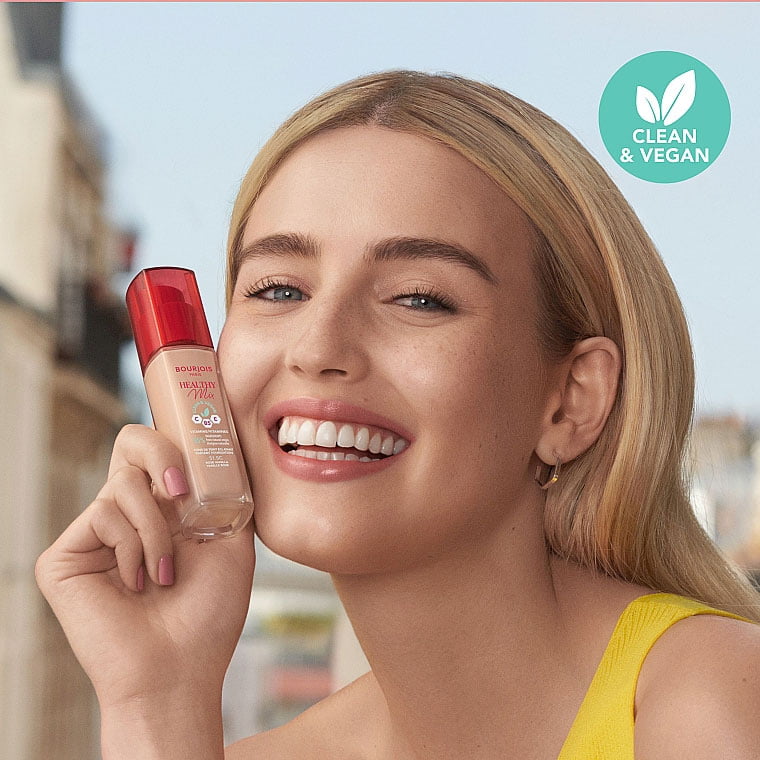 کرم پودر هلتی میکس وگان بورژوا بافتی مایع و آبرسان دارد و فورا درخشندگی را به پوست برمیگرداند و ظاهری کاملا طبیعی و نچرال به پوست می بخشد. این کرم پودر بورژوا با مجموعه ای منحصربفرد از ویتامین های C، E و B5 که دارد پوست را به خوبی تا 24 ساعت آبرسانی و کاور میکند و درخشندگی و سلامتی را در تمام طول روز برای شما به همراه دارد. 85 درصد فرمولاسیون کرم پودر Clean & Vegan بورژوا، وگان است و با مواد طبیعی که در آن به کار رفته است از پوست مراقبت می کند. همچنین بافت سبک این کرم پودر به راحتی روی پوست پخش می شود و به پوست اجازه تنفس میدهد. این کرم پودر وگان بورژوا رایحه ای دلپذیر و میوه ای دارد و حس شادابی را برای شما دو چندان میکند.