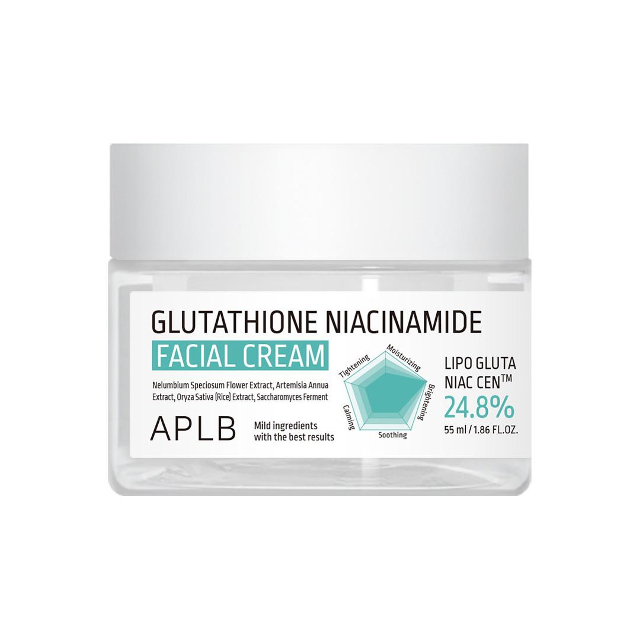 کرم گلوتاتیون و نیاسینامید ای پی ال بی APLB Glutathione Niacinamide 24.8 Facial Cream یک کرم صورت تخصصی از برند محبوب کرهای APLB است. کرم گلوتاتیون و نیاسینامید ای پی ال بی با هدف اصلی روشنکنندگی، یکنواخت کردن رنگ پوست و مبارزه با لکهای تیره طراحی شده است. نامگذاری محصول APLB به صورت هوشمندانه به ترکیبات کلیدی آن اشاره دارد: گلوتاتیون به عنوان یک آنتیاکسیدان قوی، نیاسینامید به عنوان یک ماده روشنکننده و کنترلکننده چربی، و عدد 24.8 که به درصد کمپلکس روشنکننده موجود در فرمولاسیون اشاره دارد.