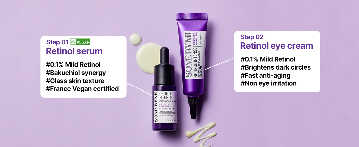 کیت رتینول سام بای می SOME BY MI Retinol Intense Trial Kit شامل دو محصول مراقبت از پوست است که با هدف مبارزه با علائم پیری و بهبود بافت و الاستیسیته پوست طراحی شده اند. این کیت آزمایشی شامل سرم و کرم چشم است که هر دو حاوی رتینول و رتینال هستند تا به نرم کردن خطوط ریز و افزایش قوام پوست برای ظاهری پرتر کمک کنند.
