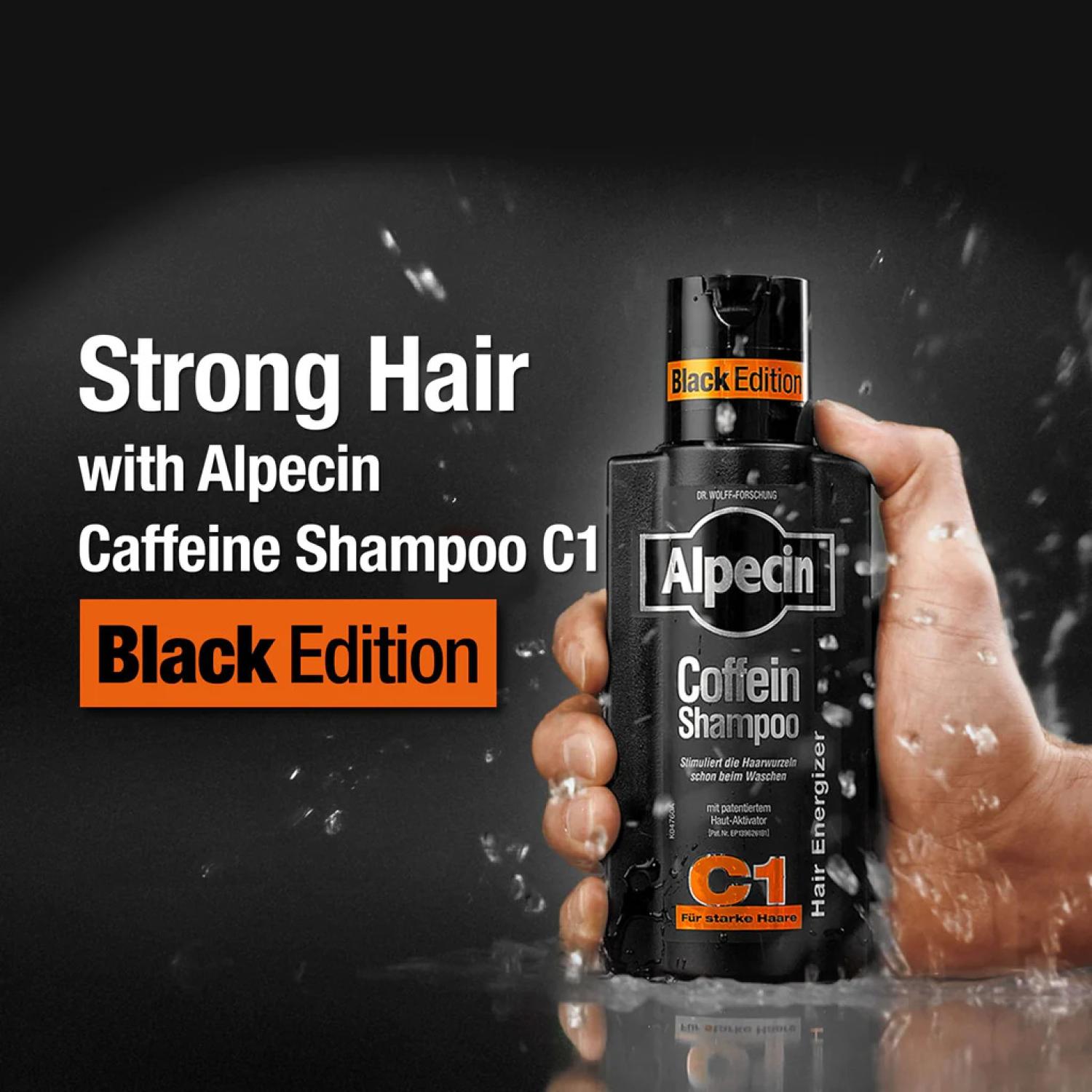 شامپو ضد ریزش کافئین دار سیاه آلپسین C1 ا Black Edition 250ml ؛ استفاده منظم و طولانی مدت از شامپو آلپسین سی وان مشکی، به جلوگیری از پیری زودرس مو کمک کند. این شامپو یک نسخه قوی تر به نسبت شامپو کافئین میباشد. بعد از استفاده این شامپو میتوان تاثیر سریع آن را بعد از 2 دقیقه ماندگاری روی کف سر مشاهده کرد.